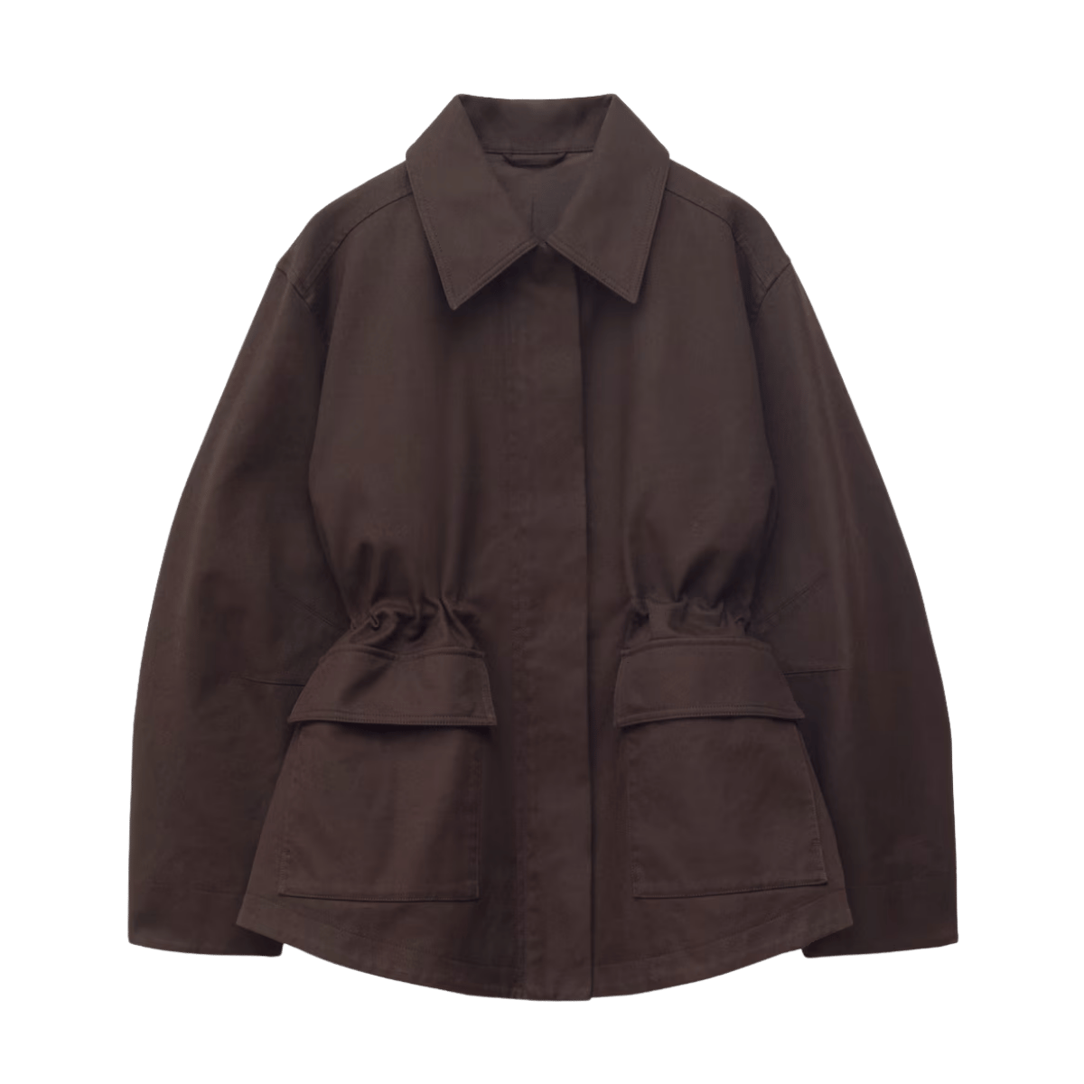 Sturdy twill gives this one a crisp appearance. & Other Stories Oversized Drawstring Utility Jacket, $199. Size XS to L.