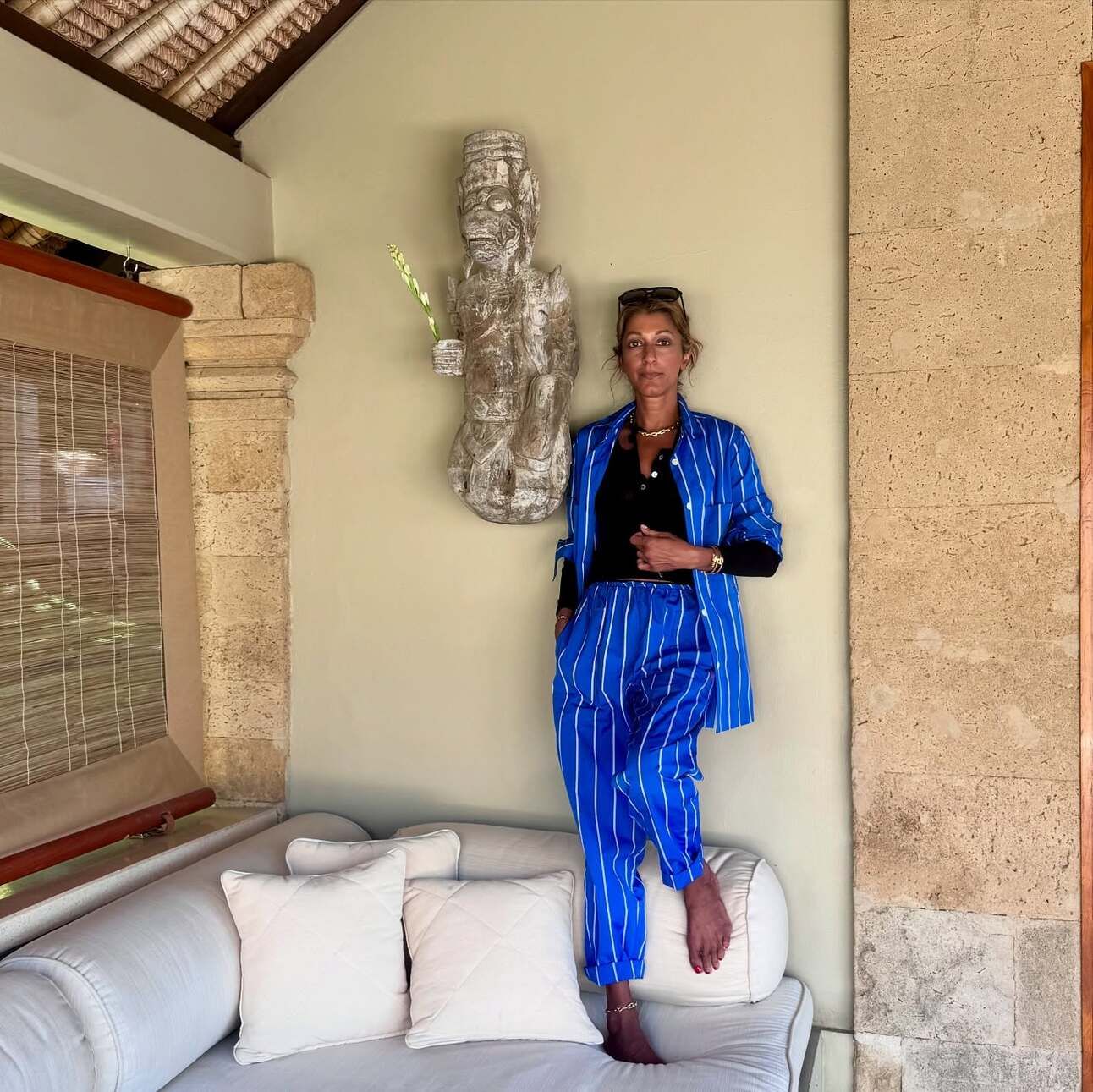 “She certainly wasn't like Kate. She didn't go out and buy a whole new wardrobe for this trip, which you know Kate did. Her clothes feel a little bit off. They're not quite right. They don't fit as well. Her hat's a little dowdy but necessary because she's not going to get sun. It was important to me that her nail color feel a little bit weird. It's this weird violet-y blue, like she was trying something and it just didn't work. Those were the choices we made along with the fact that she's in Thailand and Laurie doesn't know what to do with her hair. It's frizzy.”