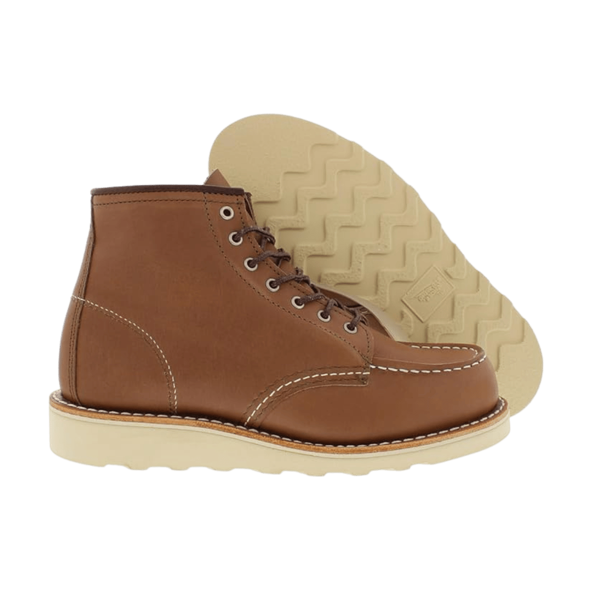 We have and love these; the sole is cushy and there’s no break-in time. Red Wing Heritage Moc Boot, $309.90.