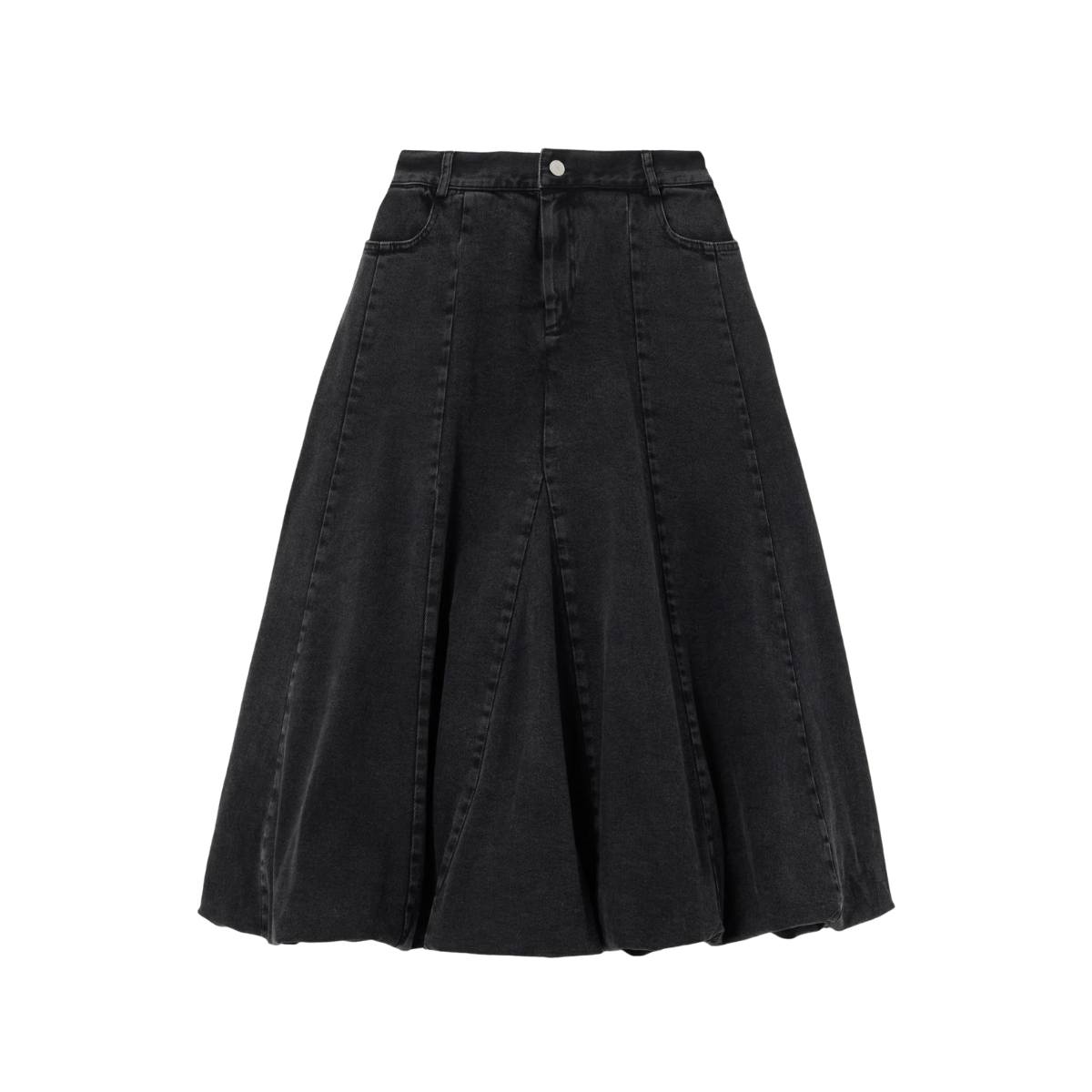 We typically steer clear of longer denim skirts, but this one has an interesting, fashion-y shape. Sea Elle Paneled Denim Midi Skirt, $138.55. Size 0 to 14.