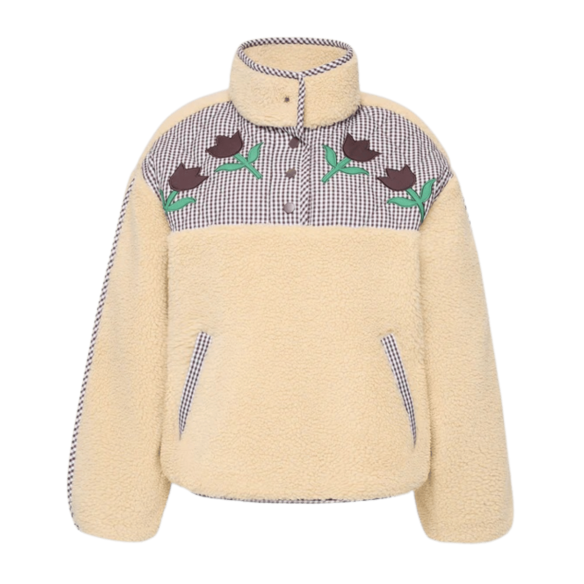 Inspired by a sweater Princess Diana wore in the ‘80s. Rowing Blazers Sheep Sherpa Jacket, $298. Size XS to XXL.