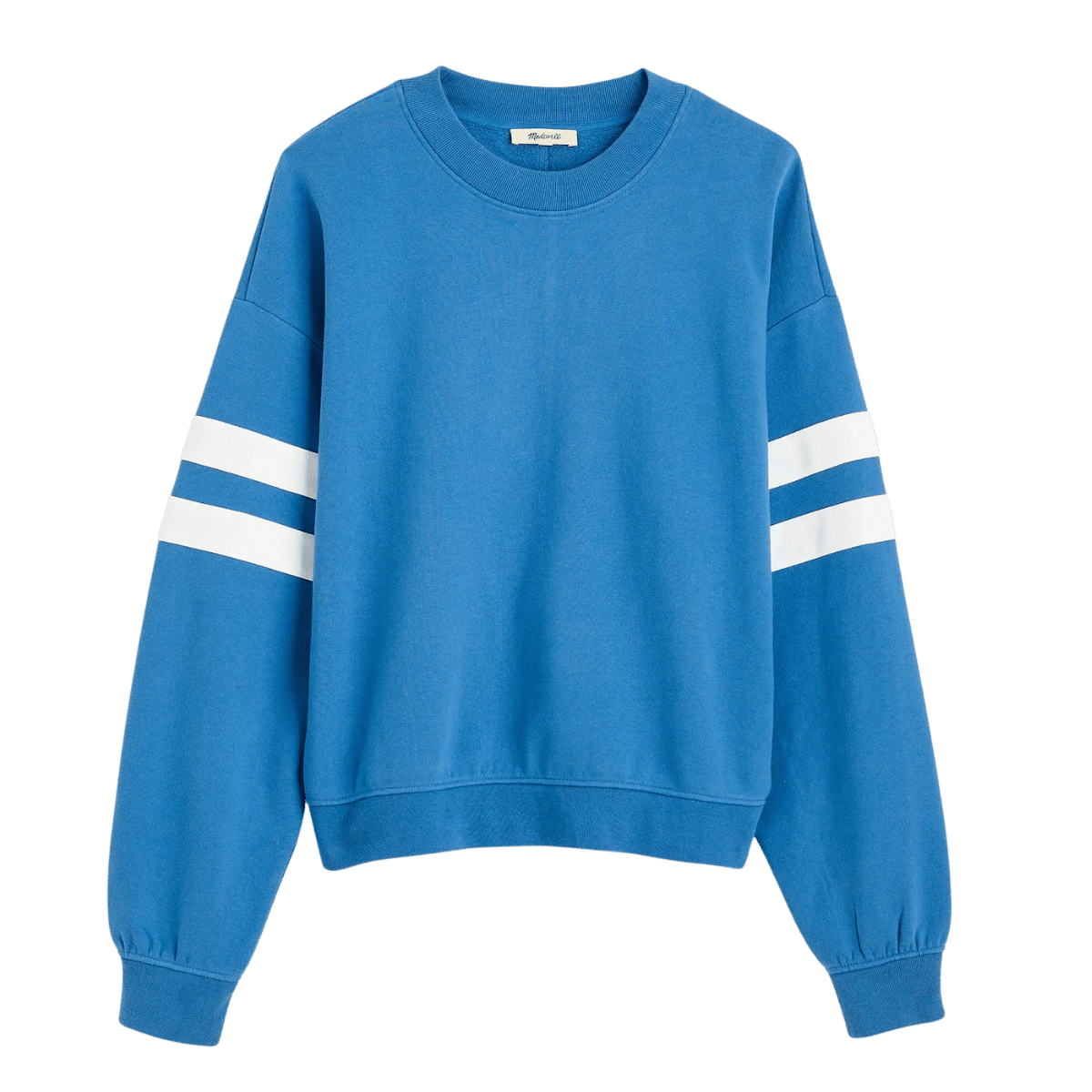 A perfect weekend look. Madewell Crewneck Varsity Sweatshirt, $98. Size XXS to XXL.