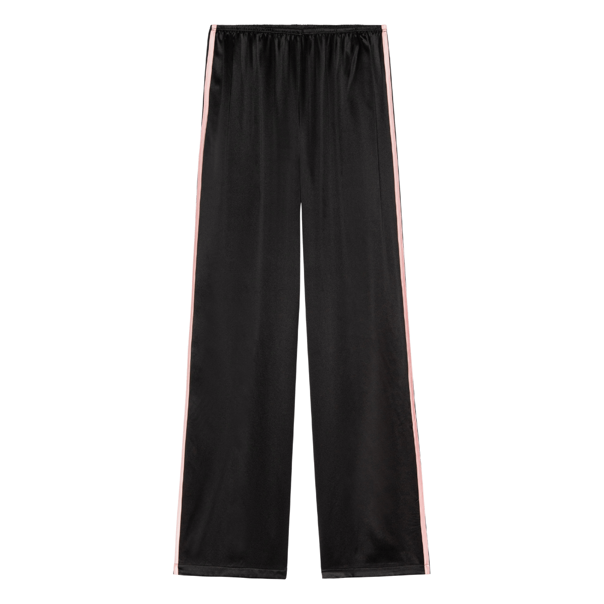 A luxe version in silk. Donni The Silk Stripe Simple Pant, $418. Size XXS to XXL.
