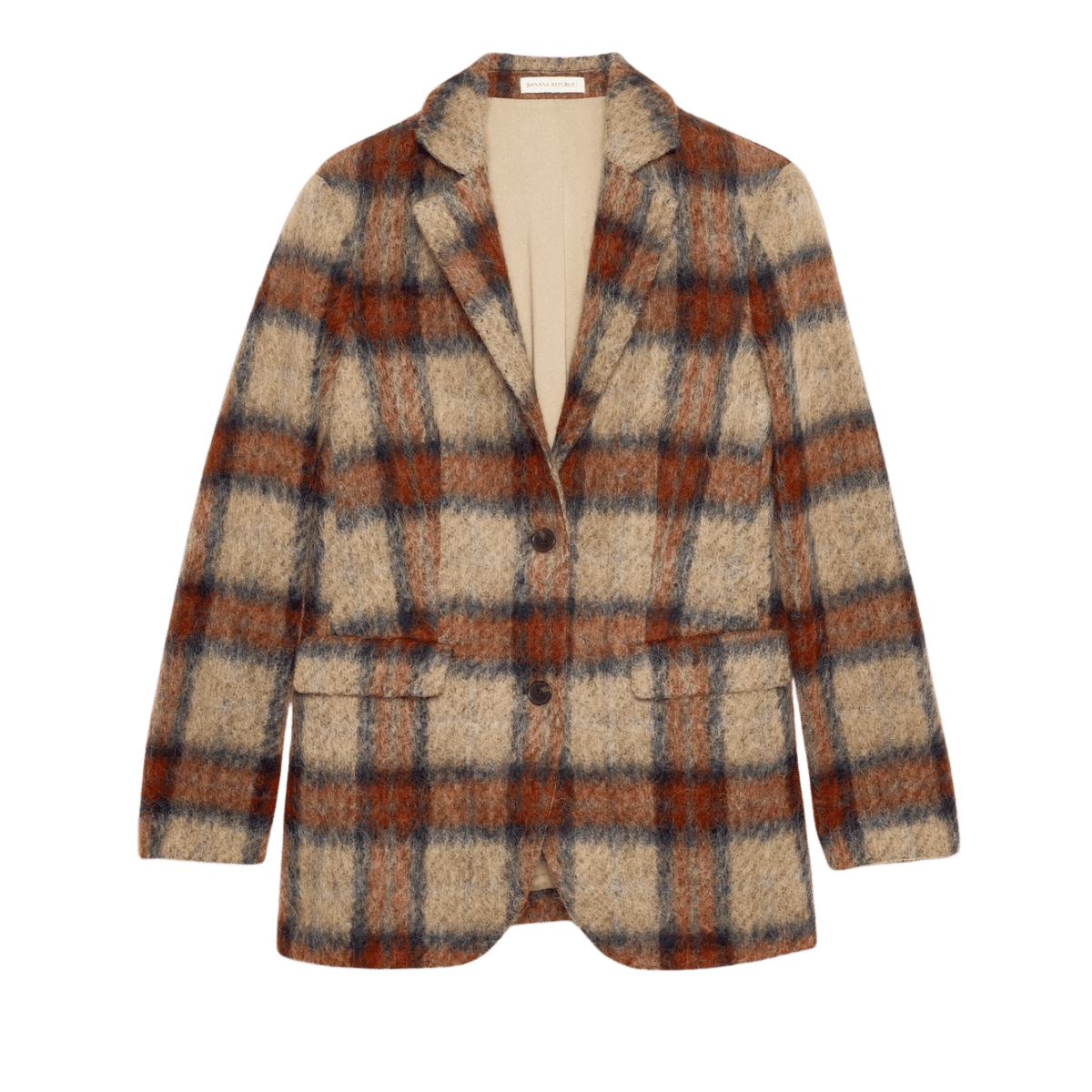 Love the plaid and the fuzzy texture. Banana Republic Italian Plaid Blazer, $350. Size XXS to XXL.