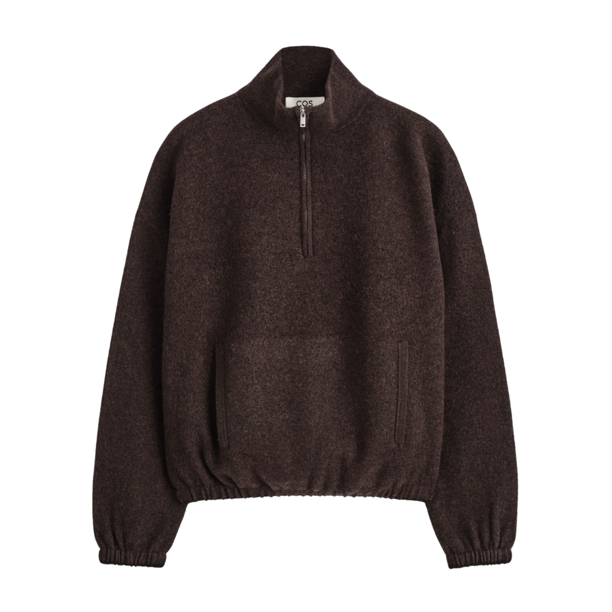 A sporty, and warm, layer. Cos Boiled Merino Wool Zip-Up Jumper, $199. Size XS to XL.