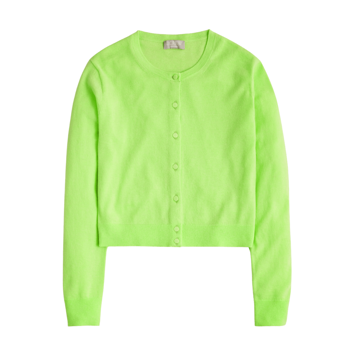 The wild color takes the stuffiness out of a classic cashmere cardigan. J.Crew Featherweight Cashmere Cardigan, $188. Size XXS to 3XL.