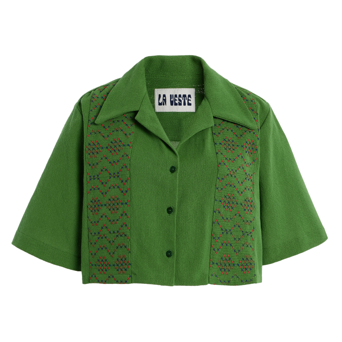This is a very appealing shirt. La Veste Juggle Patchwork Shirt, $305. Size XS to L.