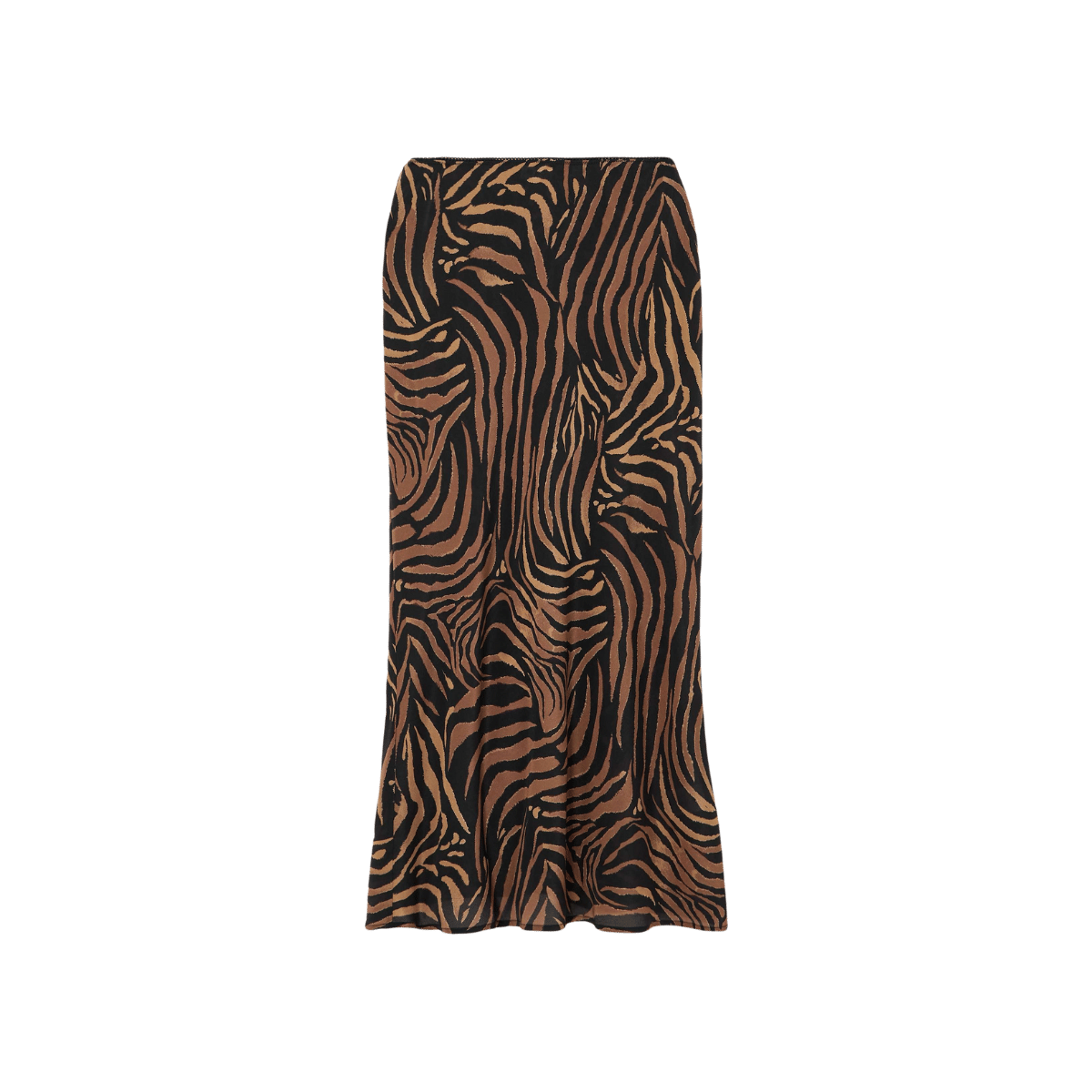 The new skirt shape this season: a lower-slung slip. Rixo Ardith Silk-Satin Midi Skirt, $295. Size UK6 to UK20.