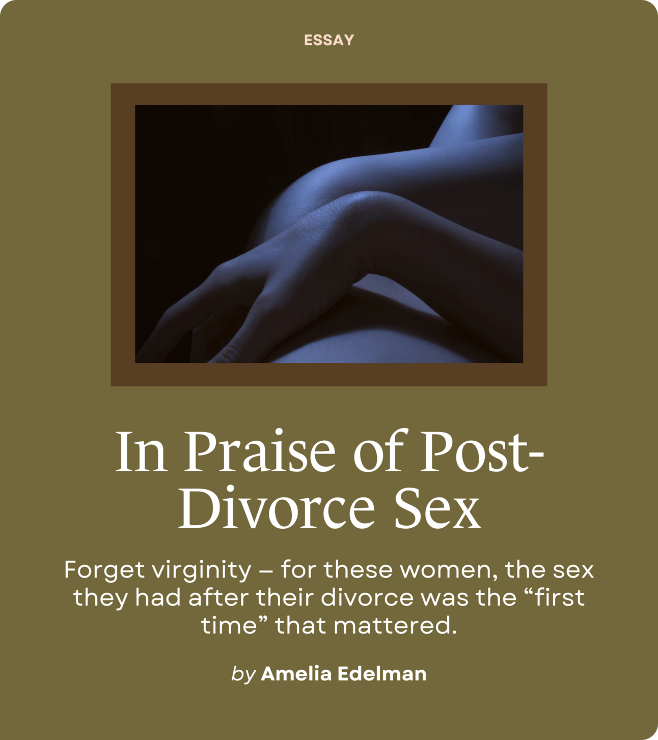 For Rebecca, a small business owner in Tennessee, post-divorce sex was just…easier. She saw it as “a fresh start,” she says, where she could “actually say what I want and ask for what I want without all the baggage.” This also reflects the experiences of Tara, a writer based in Connecticut, who says post-divorce sex “was less performative, and more about pleasure.”