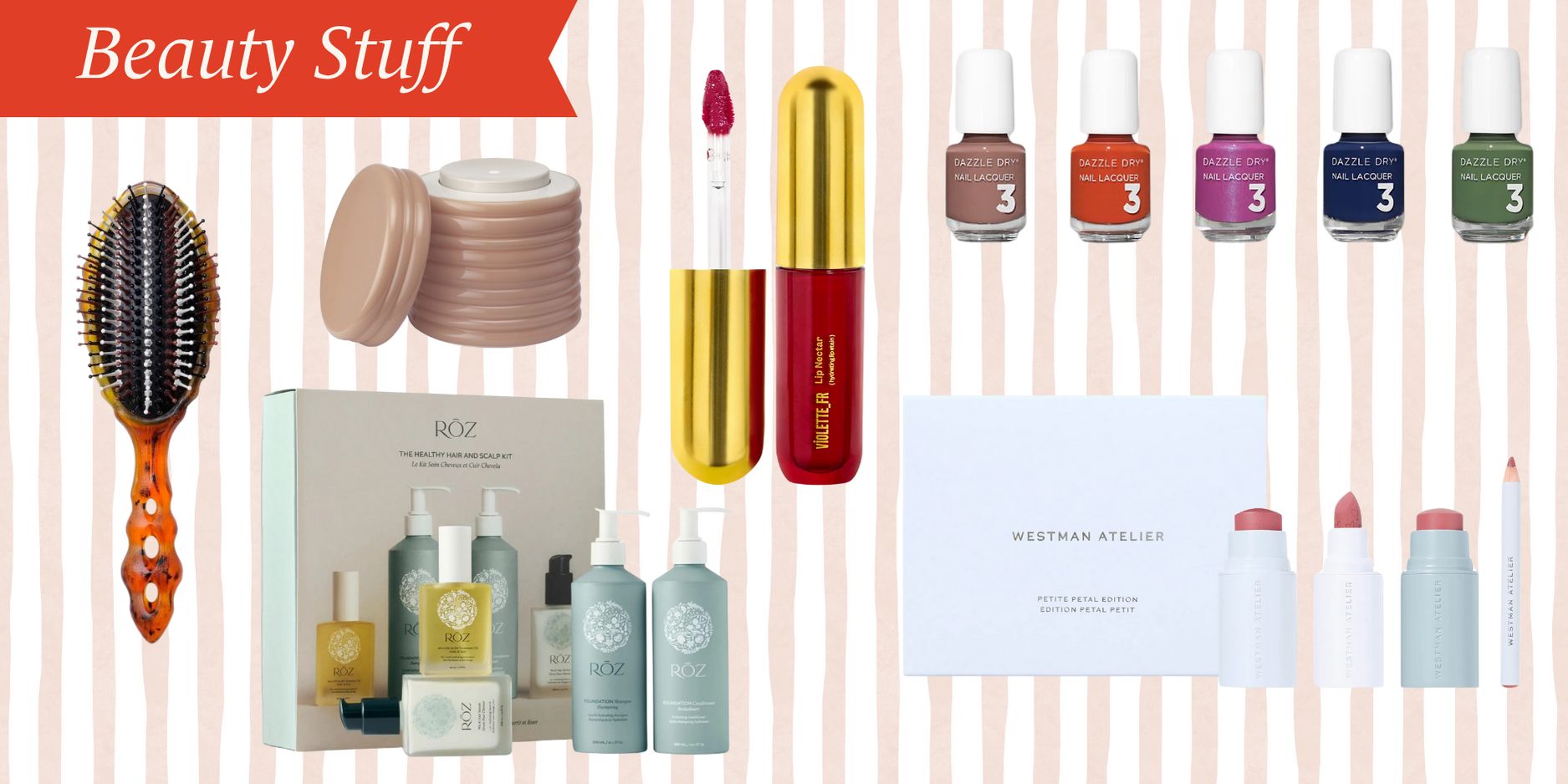A mini set so you can try it all: blush, highlighter, lipstick, and lip liner. Westman Atelier Petite Petal Holiday Set, $75.