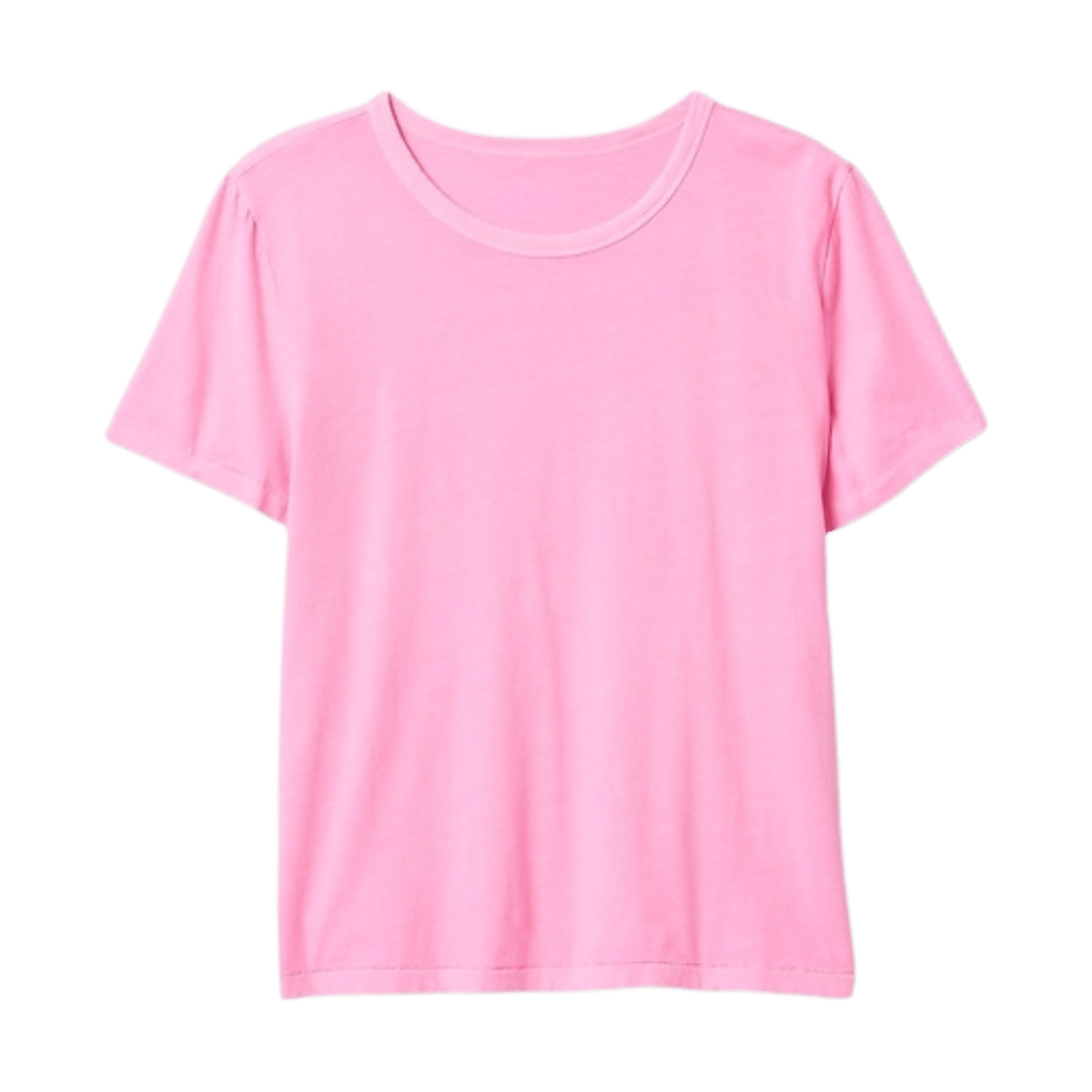 A pretty pink top that fits just right: not too tight or too loose. Gap Organic Cotton VintageSoft T-Shirt, $20. Size XXS to XXL.