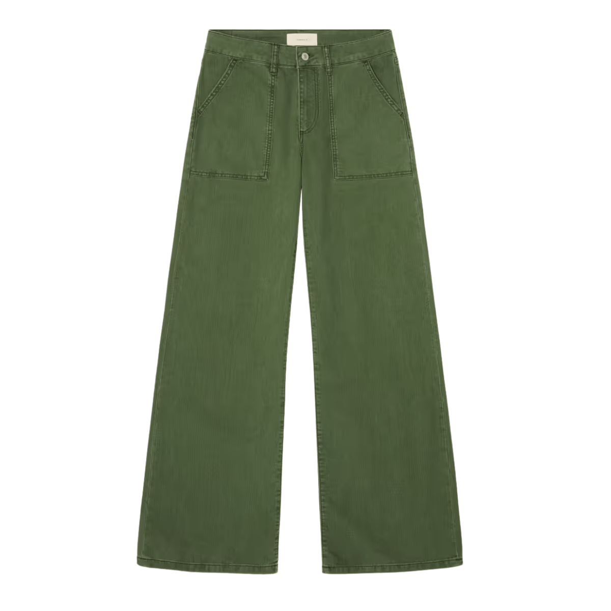 A delicate, lightweight tee is a good contrast to durable utility pants. De Base Julie Butter Tee, $70. Size S, M, L. + Pistola Denim Wren Relaxed Straight Utility Pants, $134.40. Waist size 23 to 33.